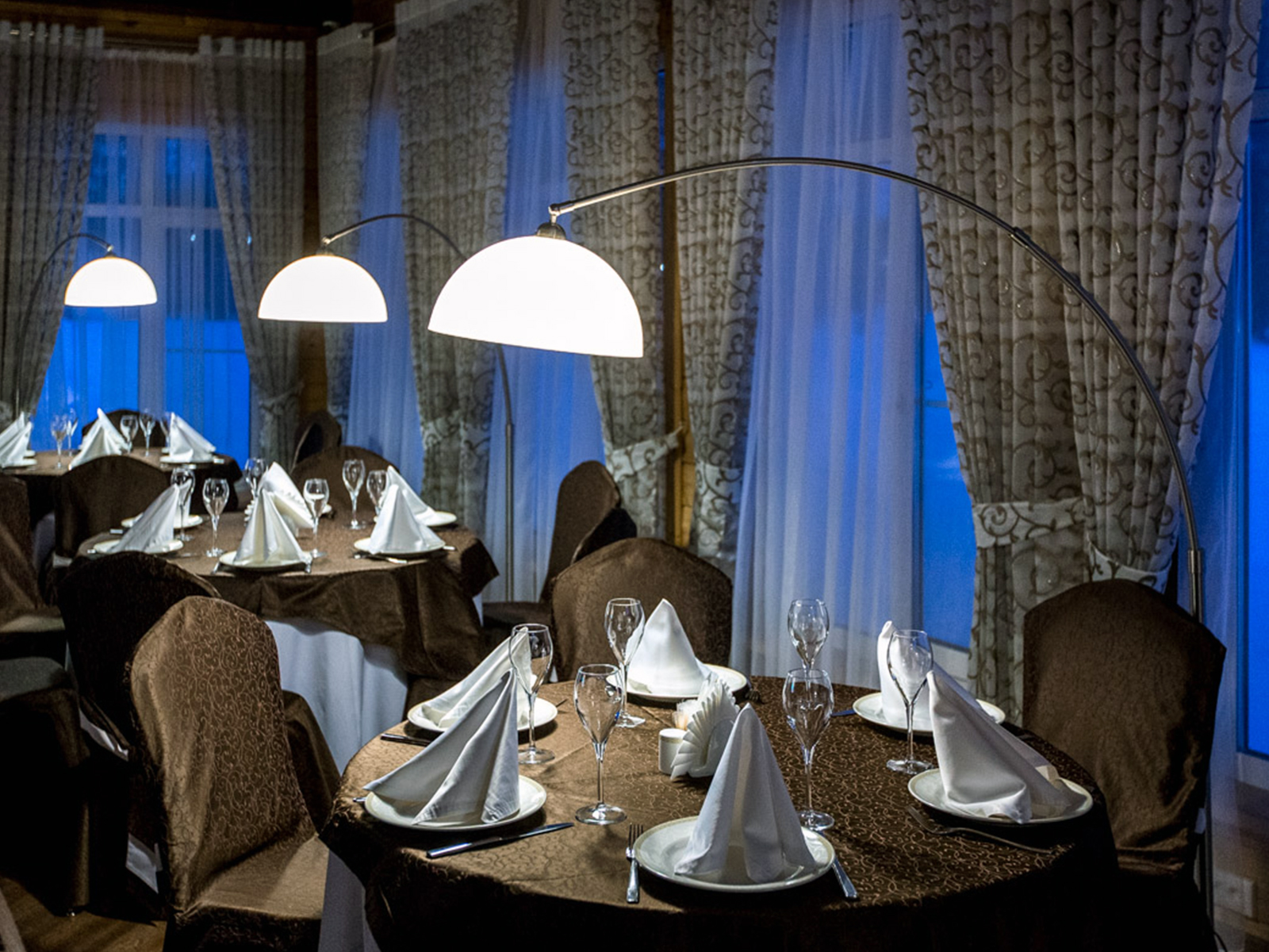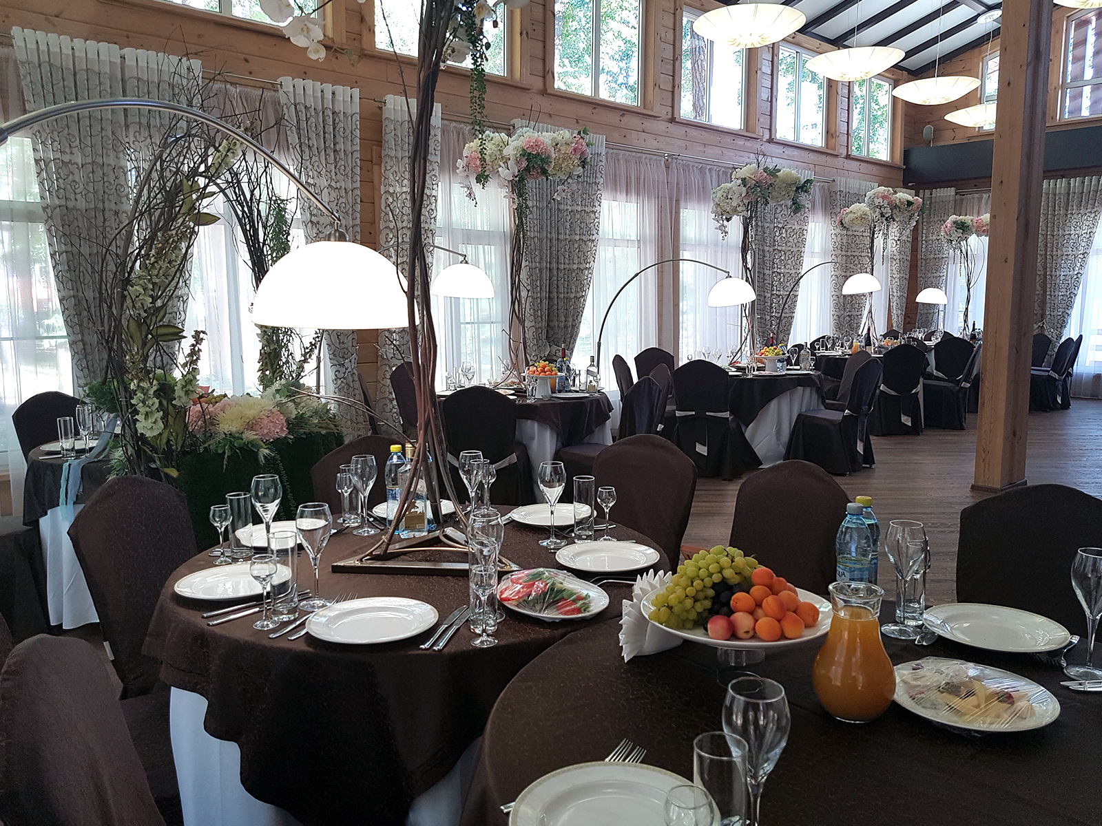 Ресторанные площадки парк-отеля рассчитаны на тех, кто любит вкусную кухню, негромкую мелодичную музыку и приятную обстановку, располагающую к отдыху. Мы готовы обслужить вас по индивидуальному заказу, провести корпоративный кофе-брейк или фуршет, свадебный или юбилейный банкет, а также организовать пикник на природе.
