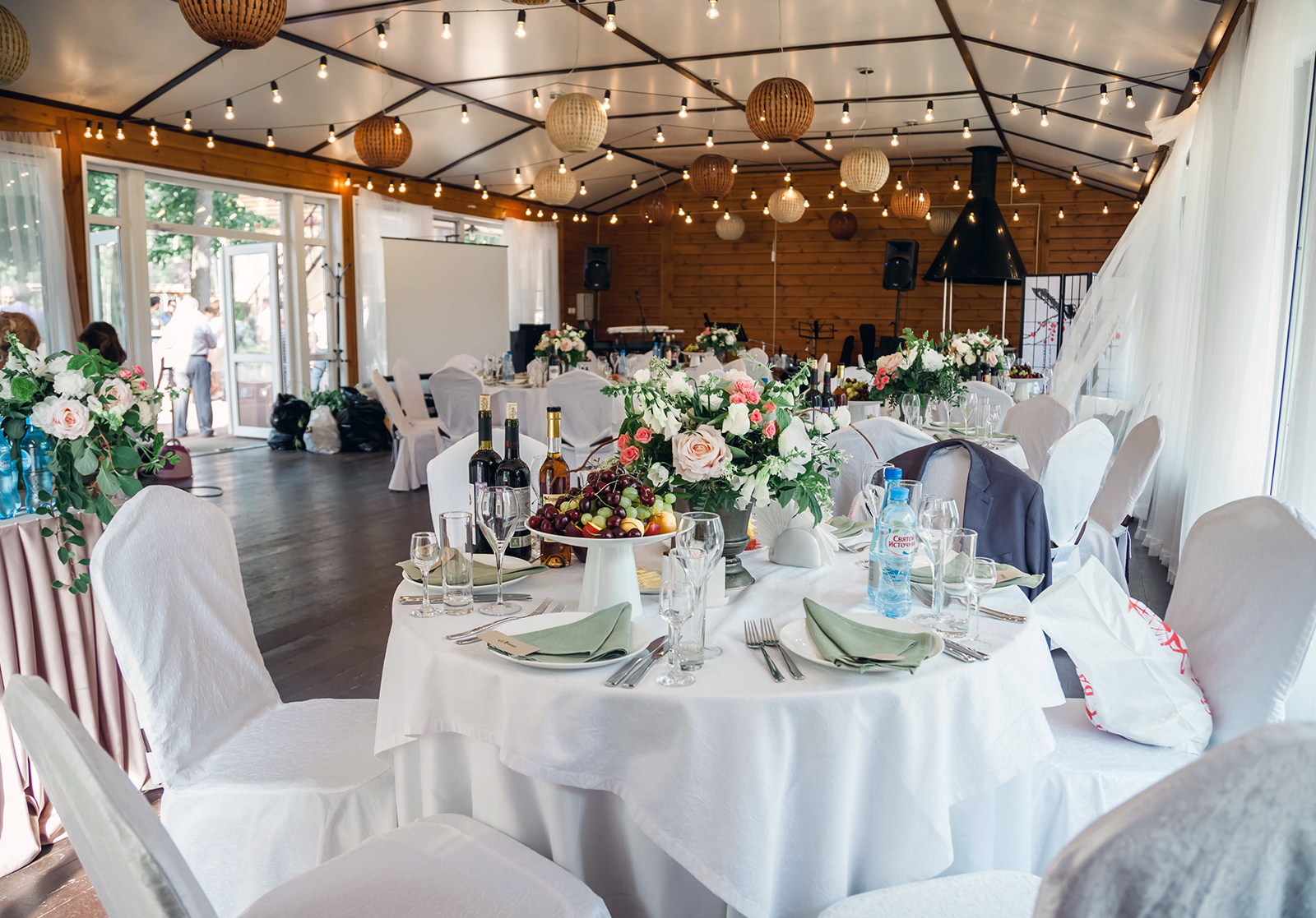 - сервисный сбор (обслуживание персоналом — официанты, банкетный координатор, уборка, охрана)